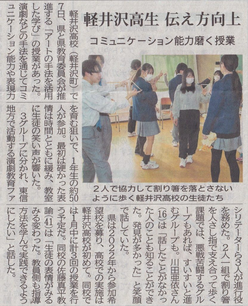 また、長野県のアートの手法を活用した学び推進事業のプログラム・パッケージ実施校にも入り、ファシリテーターのブラッシュアップや学びの場もコーディネイトし始めました。