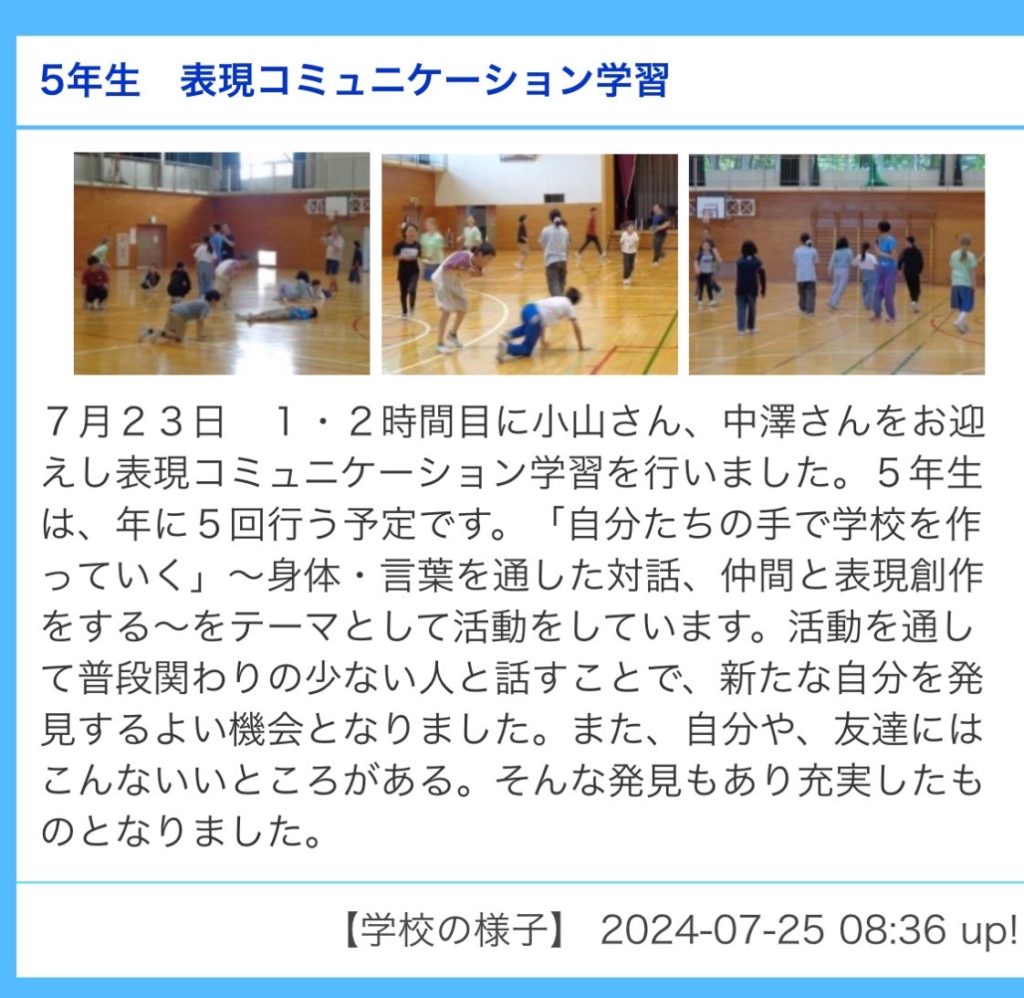 令和6年度は軽井沢町の小学校(全3校)の5年生の授業(全5回)に入り、各校の教員研修も実施いたしました。各小学校とは事前事後の打ち合わせを重ね、先生方との連携のもとに濃密な時間を共に創りました。